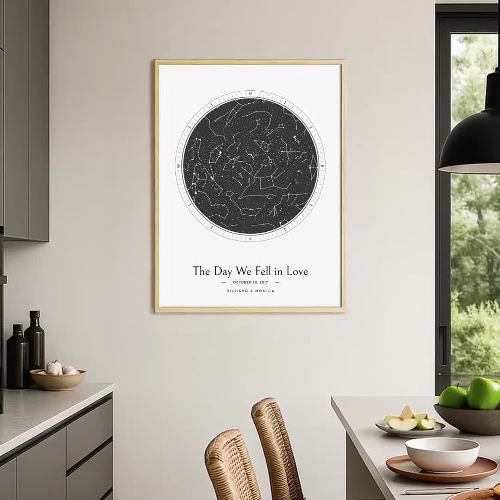 Our The Day We Fell in Love Poster - Celestial Map is available in the always ideal Portrait orientation, or it can be fully customized to your liking. Perfect for any space, this work comes in various size options and finishing materials. In fact, your The Day We Fell in Love Poster - Celestial Map will have a classic, gallery-quality look when you choose from Matte Poster, Metal Frame, Canvas, Wood Print, and more. Don't hesitate! Give your walls the makeover they deserve!
