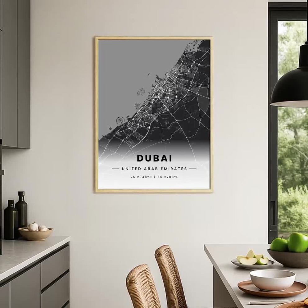 Our Dubai in Dark Poster - Street Map is available in the always ideal Portrait orientation, or it can be fully customized to your liking. Perfect for any space, this work comes in various size options and finishing materials. In fact, your Dubai in Dark Poster - Street Map will have a classic, gallery-quality look when you choose from Matte Poster, Metal Frame, Canvas, Wood Print, and more. Don't hesitate! Give your walls the makeover they deserve!