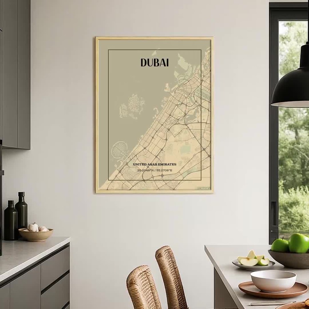 Our Dubai in Vintage Poster - Street Map is available in the always ideal Portrait orientation, or it can be fully customized to your liking. Perfect for any space, this work comes in various size options and finishing materials. In fact, your Dubai in Vintage Poster - Street Map will have a classic, gallery-quality look when you choose from Matte Poster, Metal Frame, Canvas, Wood Print, and more. Don't hesitate! Give your walls the makeover they deserve!