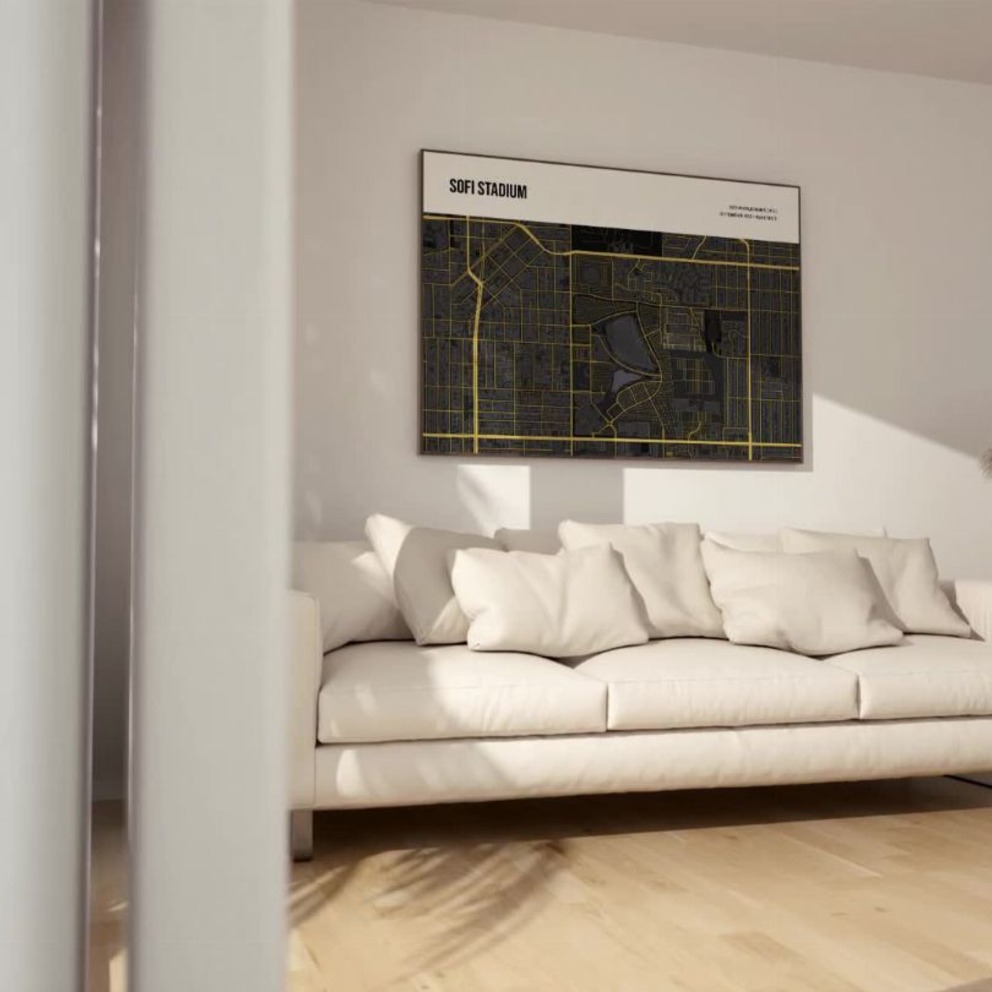Our Los Angeles Rams Stadium Poster - Street Map is available in the always ideal Landscape orientation, or it can be fully customized to your liking. Perfect for any space, this work comes in various size options and finishing materials. In fact, your Los Angeles Rams Stadium Poster - Street Map will have a classic, gallery-quality look when you choose from Matte Poster, Metal Frame, Canvas, Wood Print, and more. Don't hesitate! Give your walls the makeover they deserve!