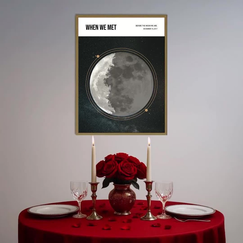 Our When We Met Poster - Lunar Glow Moon Phases Print is available in the always ideal Portrait orientation, or it can be fully customized to your liking. Perfect for any space, this work comes in various size options and finishing materials. In fact, your When We Met Poster - Lunar Glow Moon Phases Print will have a classic, gallery-quality look when you choose from Matte Poster, Metal Frame, Canvas, Wood Print, and more. Don't hesitate! Give your walls the makeover they deserve!